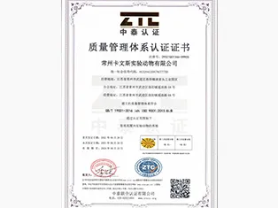 我司秉持實(shí)驗(yàn)動(dòng)物質(zhì)量是公司生命線,建立了完善的飼養(yǎng)操作流程,嚴(yán)控實(shí)驗(yàn)動(dòng)物質(zhì)量,并依據(jù)CNAS-CL06:2018《實(shí)驗(yàn)動(dòng)物飼養(yǎng)和使用機(jī)構(gòu)質(zhì)量和能力認(rèn)可準(zhǔn)則》建立了質(zhì)量管理體系,于2021年獲得ISO 9001質(zhì)量管理體系和IOS 14001環(huán)境管理體系認(rèn)證。我司將不斷完善和改進(jìn)質(zhì)量管理體系,為客戶提供更高品質(zhì)的產(chǎn)品及服務(wù)。